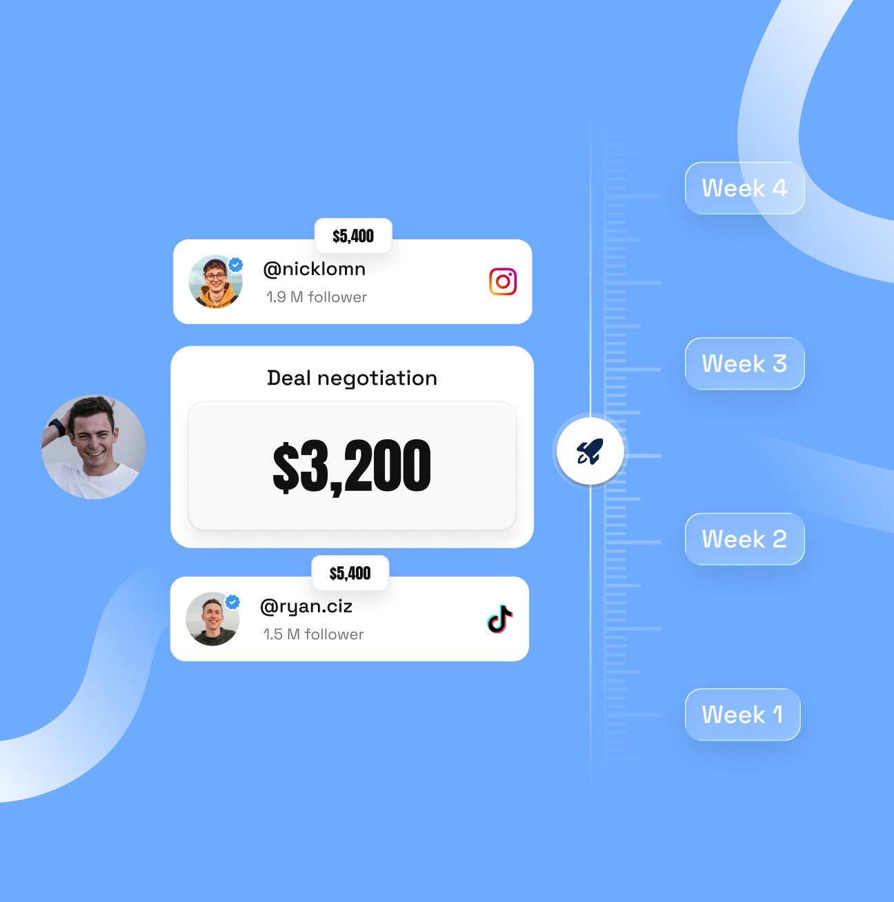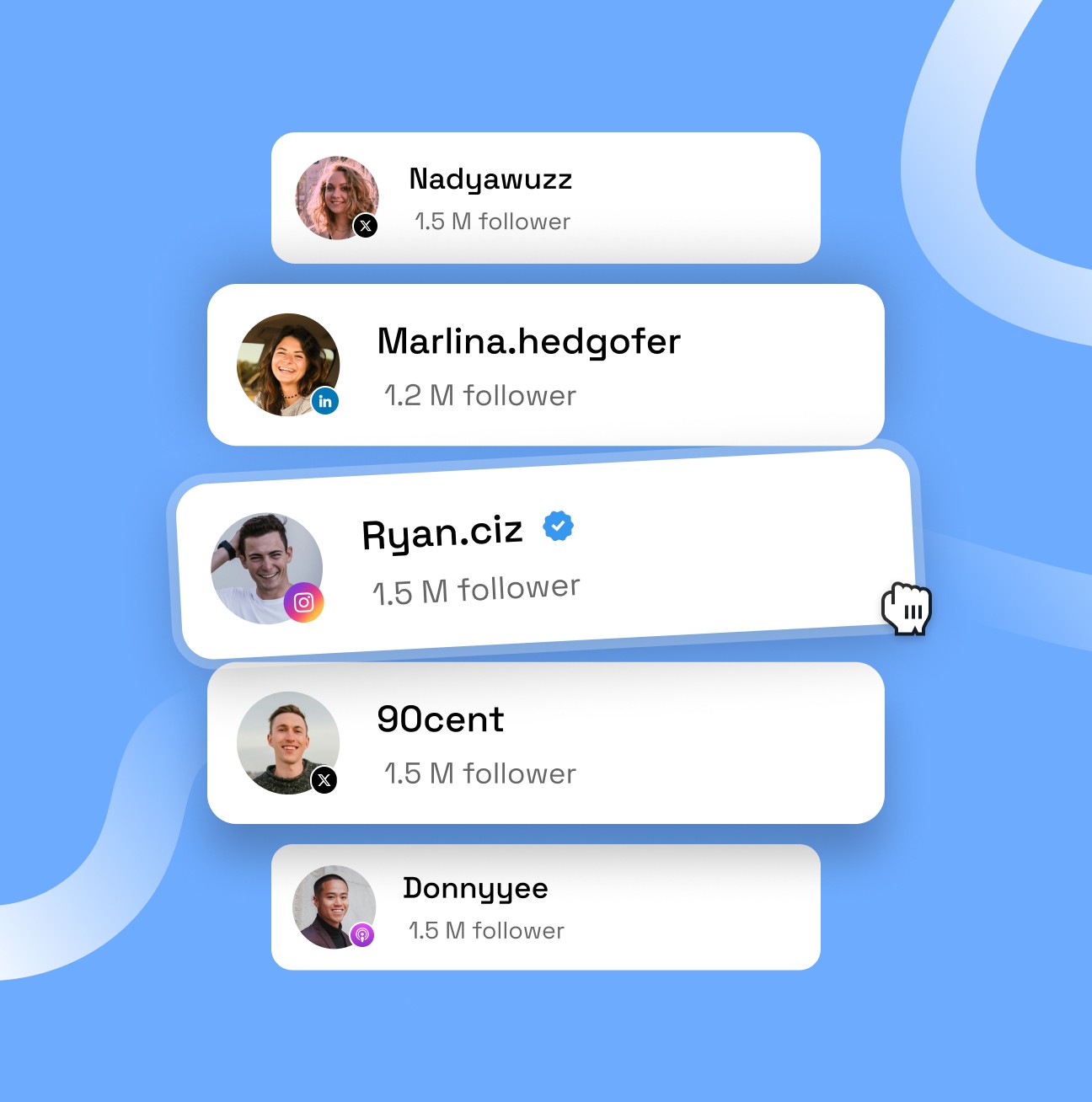Want us to activate a specific creator for you? We have thousands of creators in our network—so you can utilize us as a middleman for your influencer marketing needs if you want to work with a specific creator. We will get everything done for you and only charge you once the creator has successfully posted.
